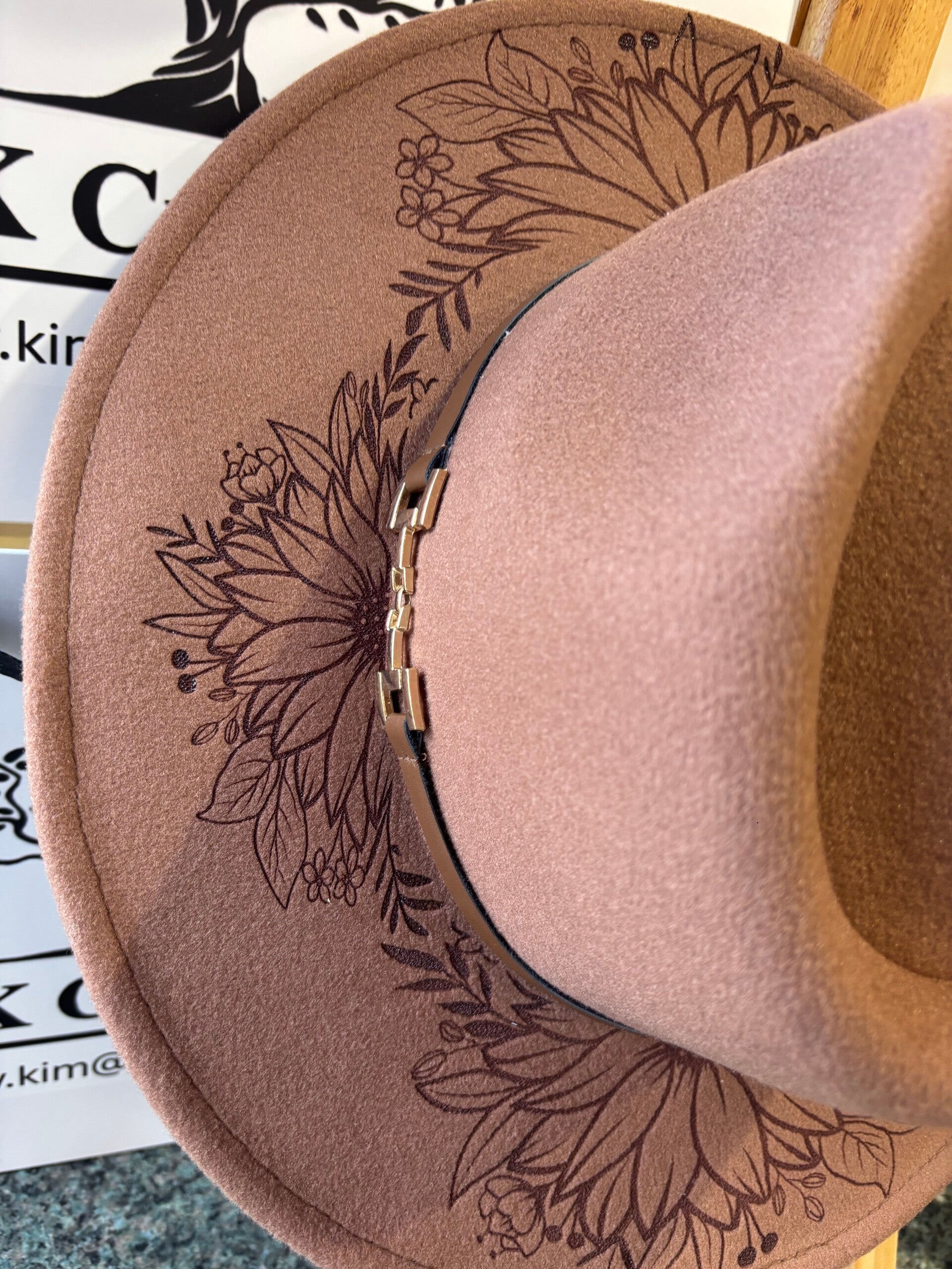 Sunflower wrapped around as a border, laser etched Fedora hat.
