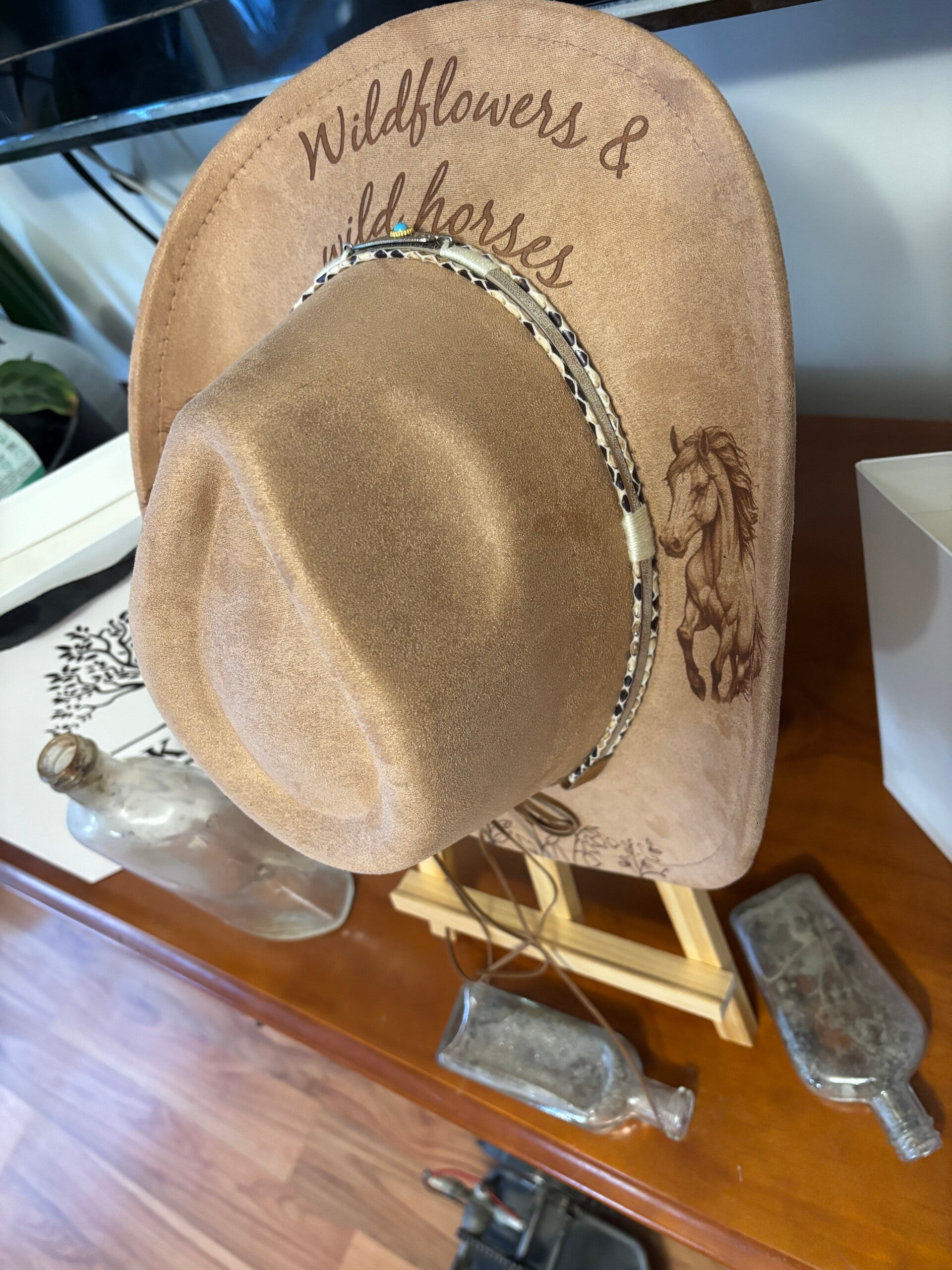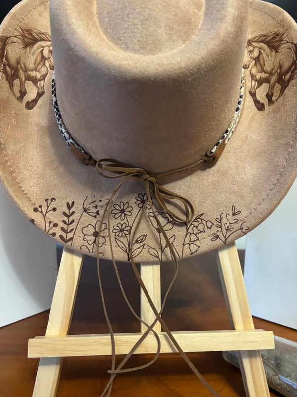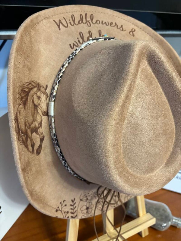 Wildflowers & Wild horses, laser etched fedora hat